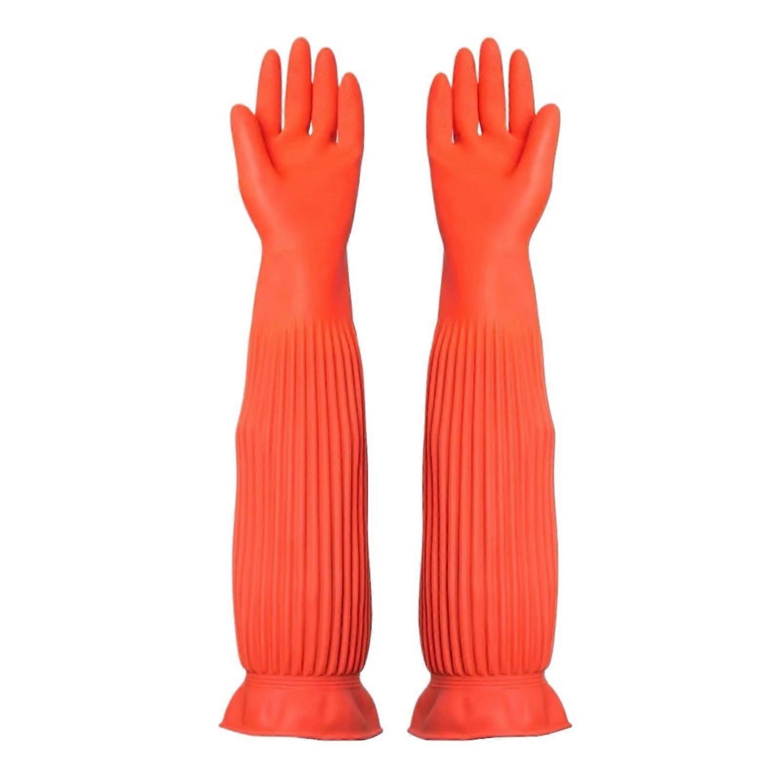 56CM Waterproof Household Gloves, Long Rubber Dishwashing Gloves, Warm Kitchen Cleaning Tools, Water Stop Feature