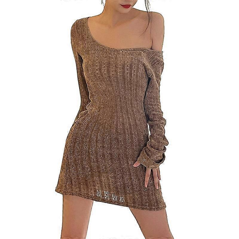 Women's Sexy Hollow Out Long Sleeve Sweater Dress Cutout Knitted Mini Dress