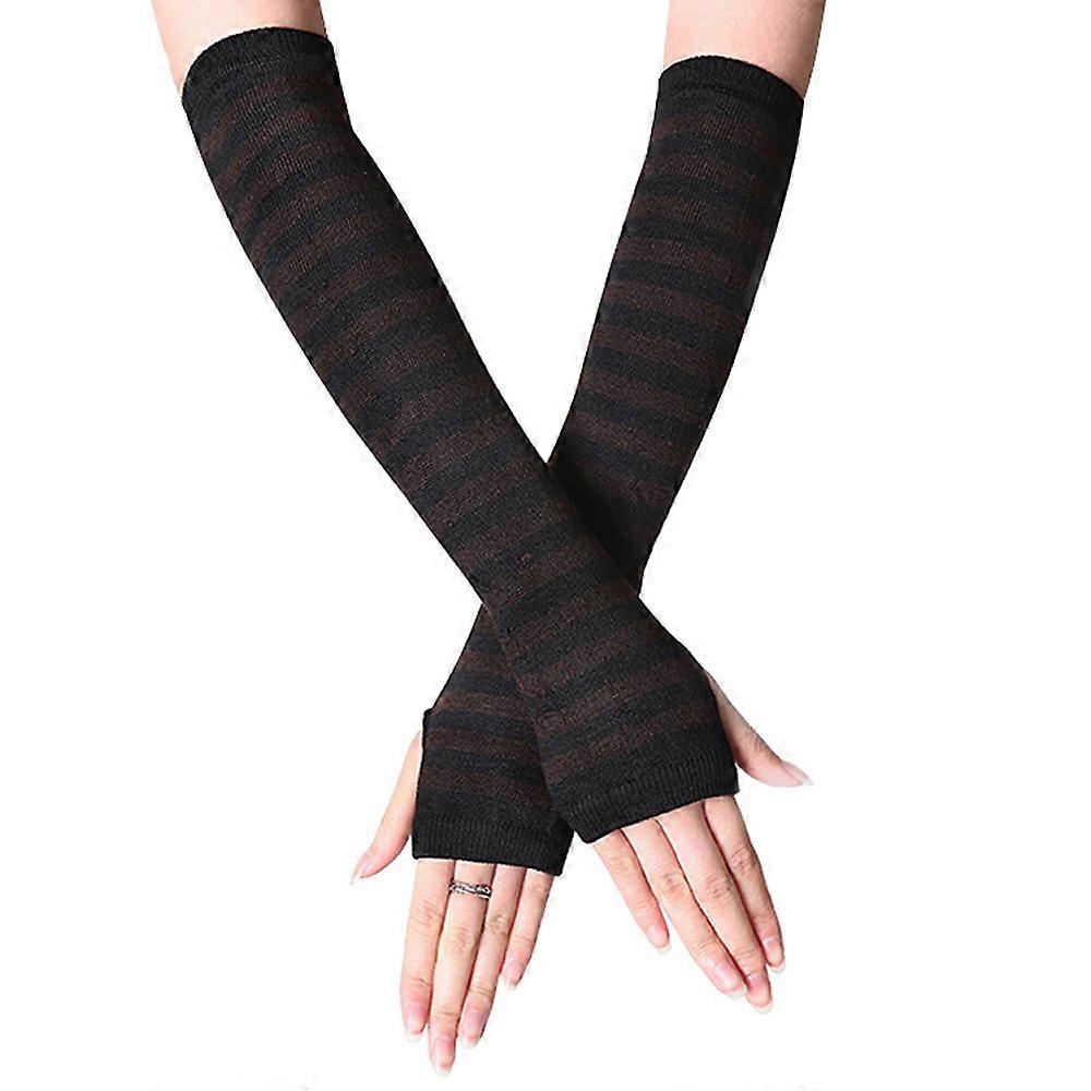 Womens Wrist Arm Warmer Mittens Long Hand Fingerless Striped Gloves
