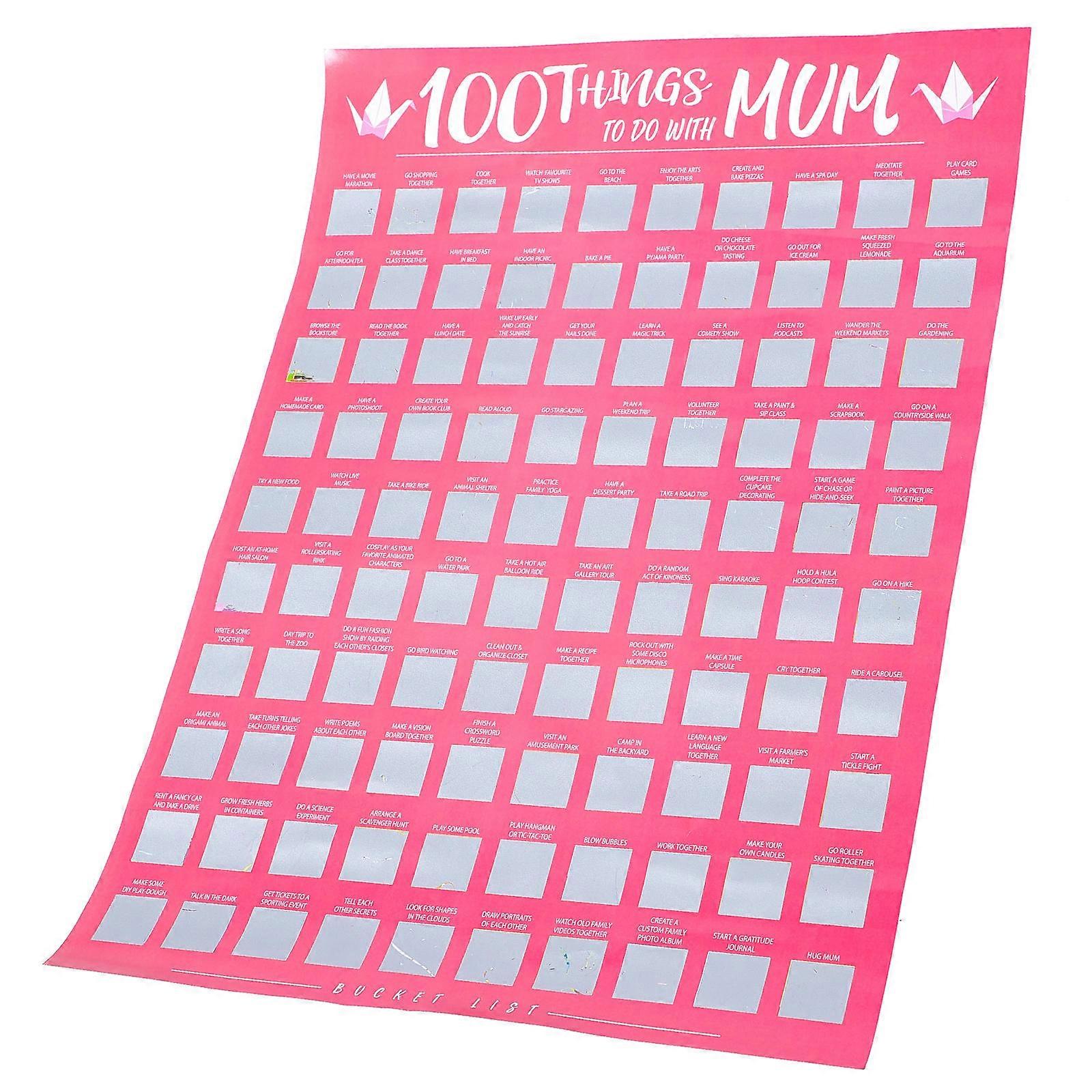 Mother's Day Decorations 100-Things to Do with Mom Scratchable Poster Home Decor Silver 59.4x42cm 1Pack