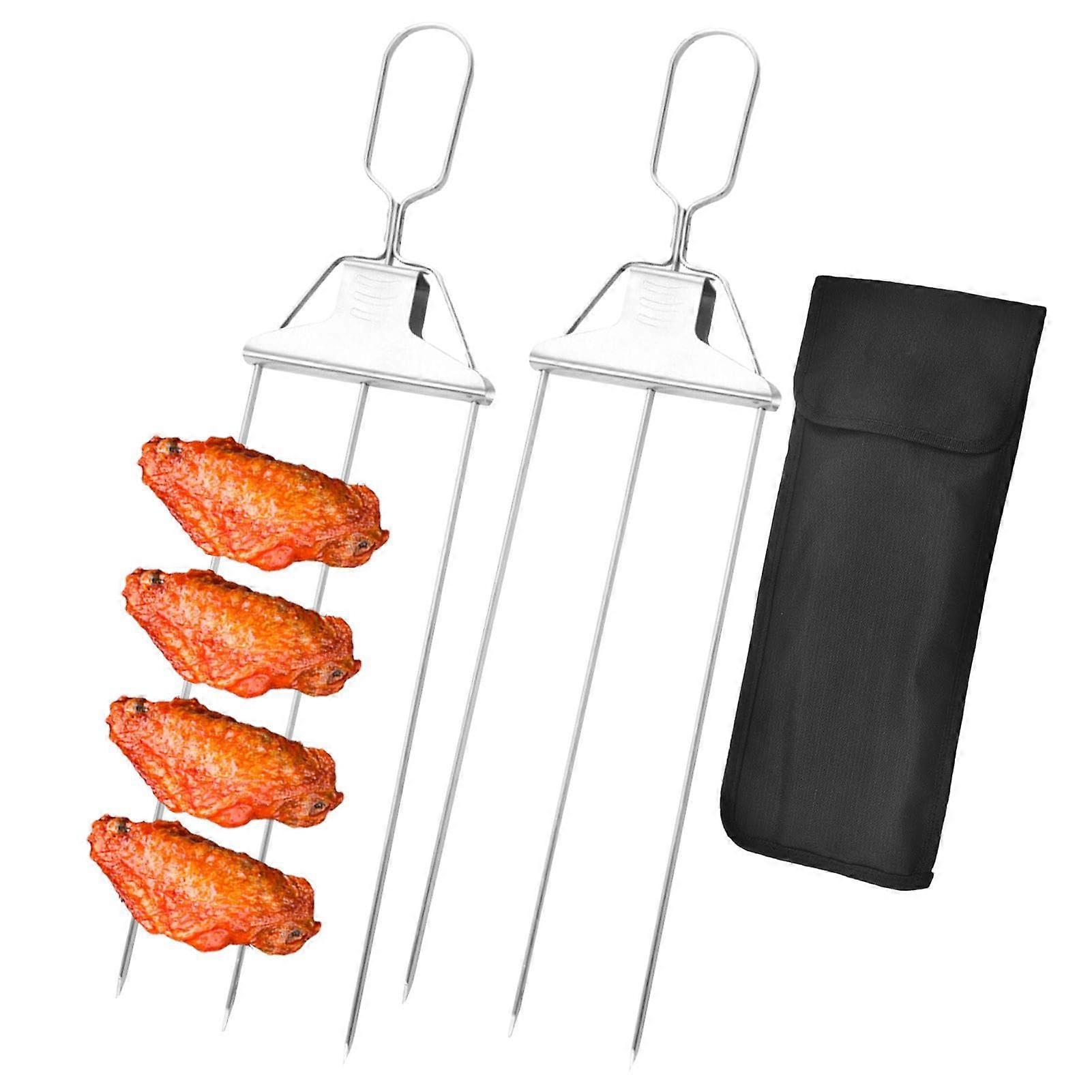 Semiautomatic stainless steel grill fork, 3prong barbecue skewers, 2 Pieces Bag