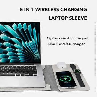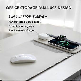 5 in 1 Laptop Sleeve with Wireless Charging for 12"-14" Laptops, Multipurpose Travel Case in Beige, Desktop Charging Mat