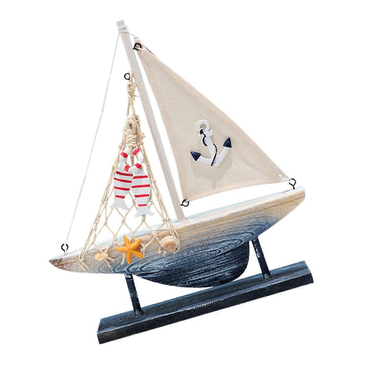 Sailboat Model Mediterranean Style Decoration for Table Office Bedroom Nautical Wooden Figure as Gift for Home and Parties as Shown 2