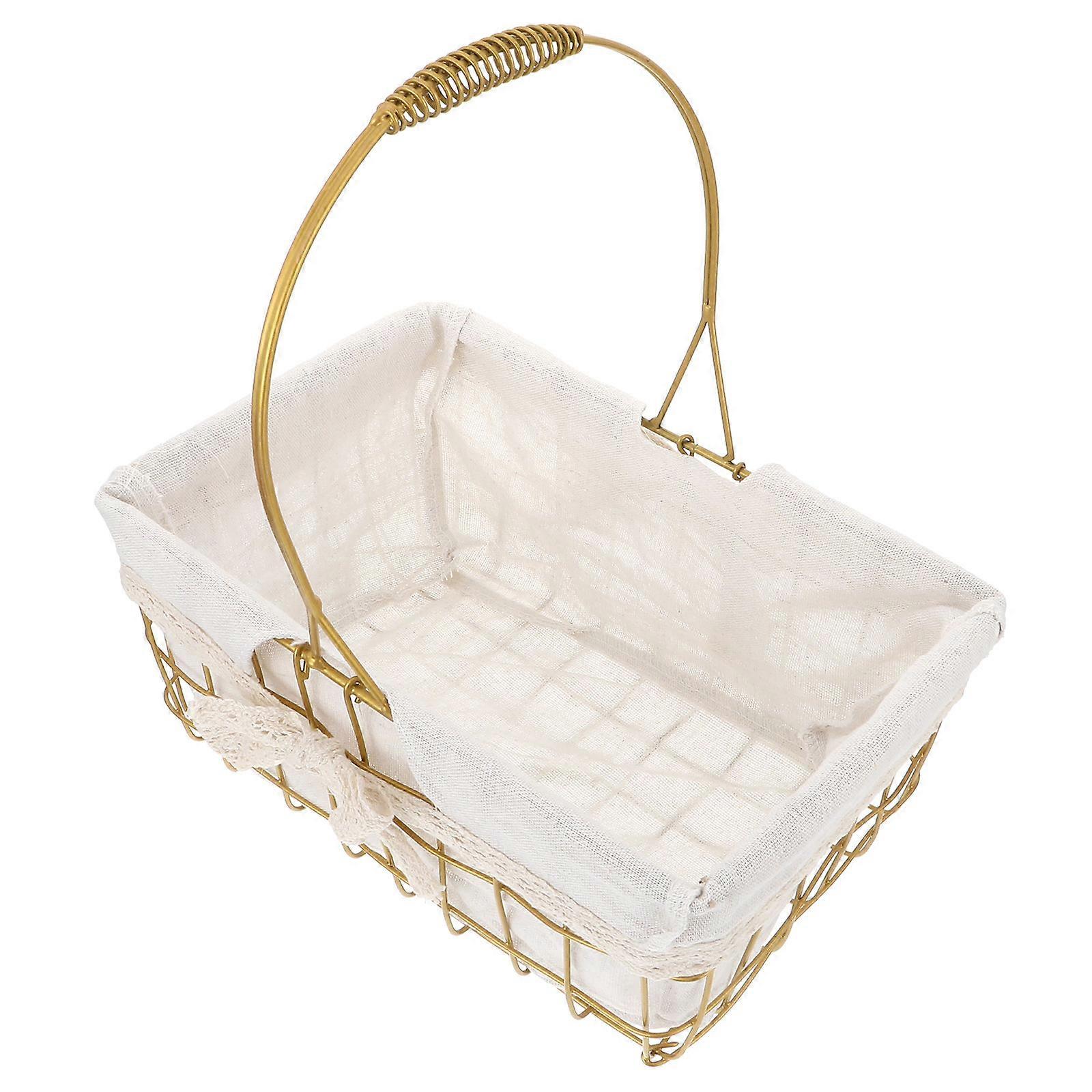 Storage Baskets Wrought Iron Storage Handy Basket Outdoor Use Rustic Style Cloth 1Pcs