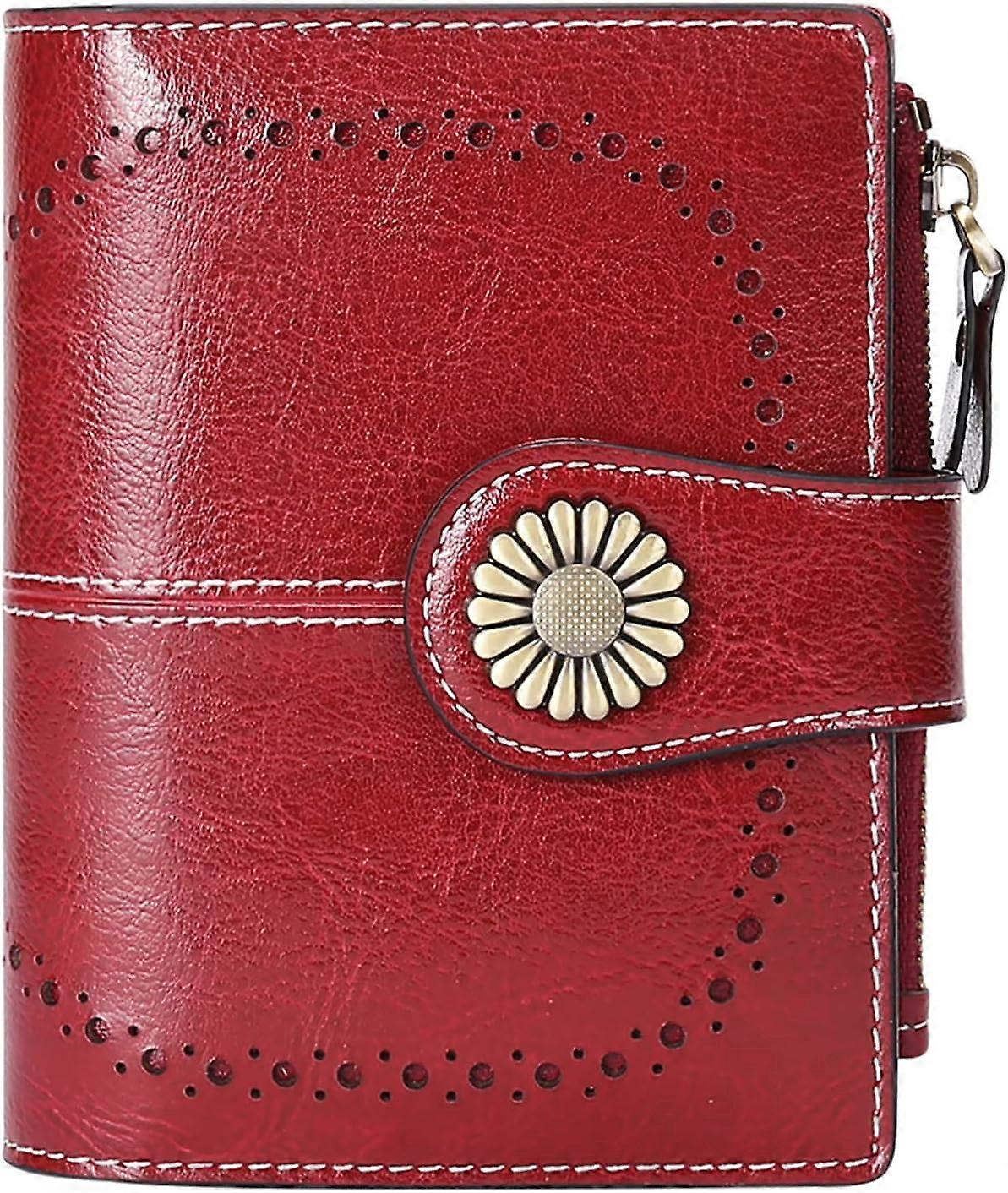 Red Women's Wallet Coin Purse Leather Short Card Holder Female Zipper Wallet with 16 Card Slots Anti RFID Wallet