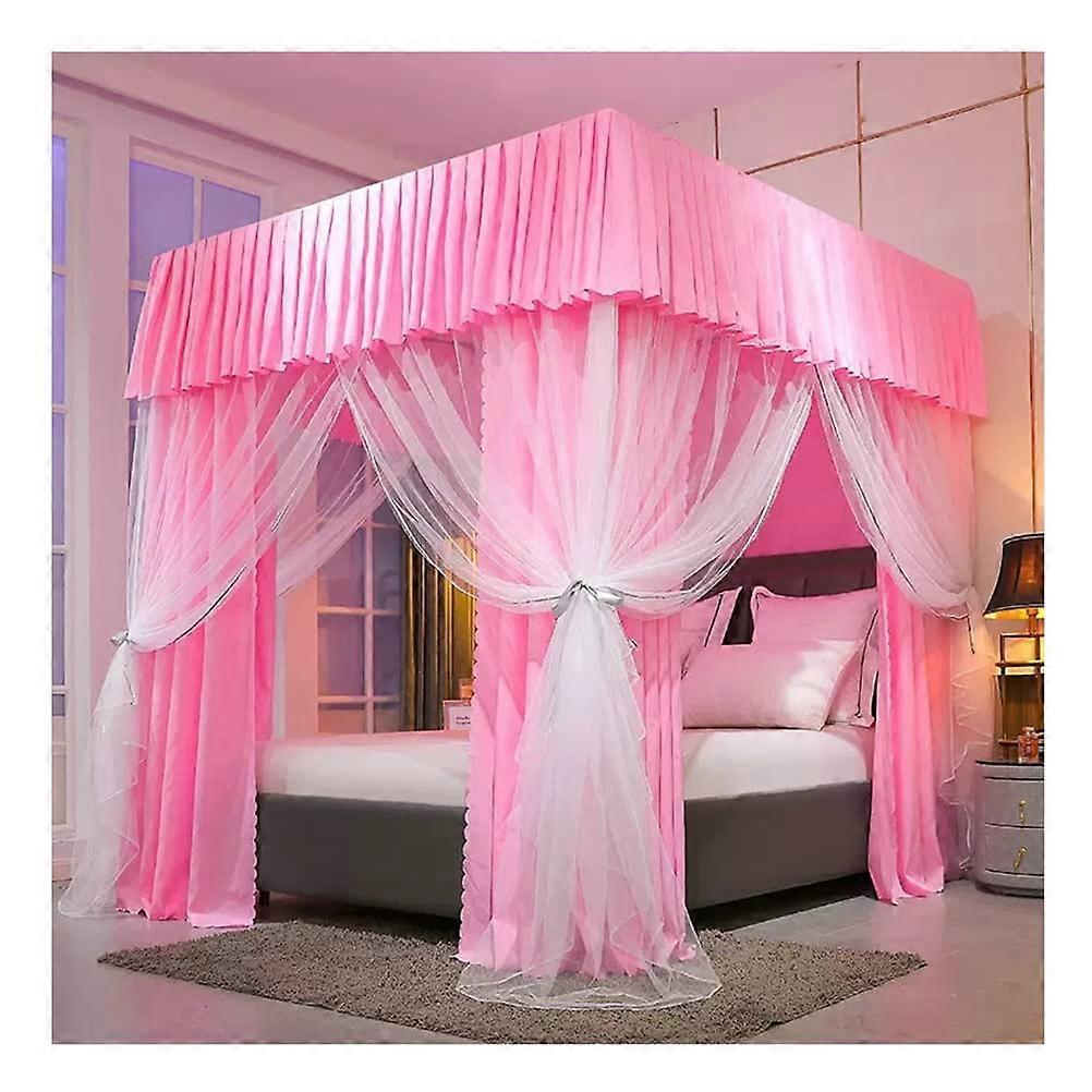2-in-1 Bed Canopy Mosquito Net for Twin Queen King Beds, Pink Decorative Curtain with Metal Clips, 180 x 220 cm