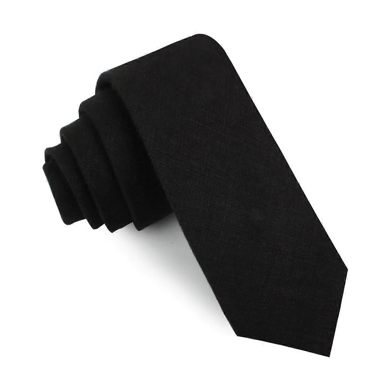 Linen Skinny Tie Casual Ties for Men Neck Tie for Groomsmen Wedding Ties or Formal Occasions Ideal for Him Ink Black Slub