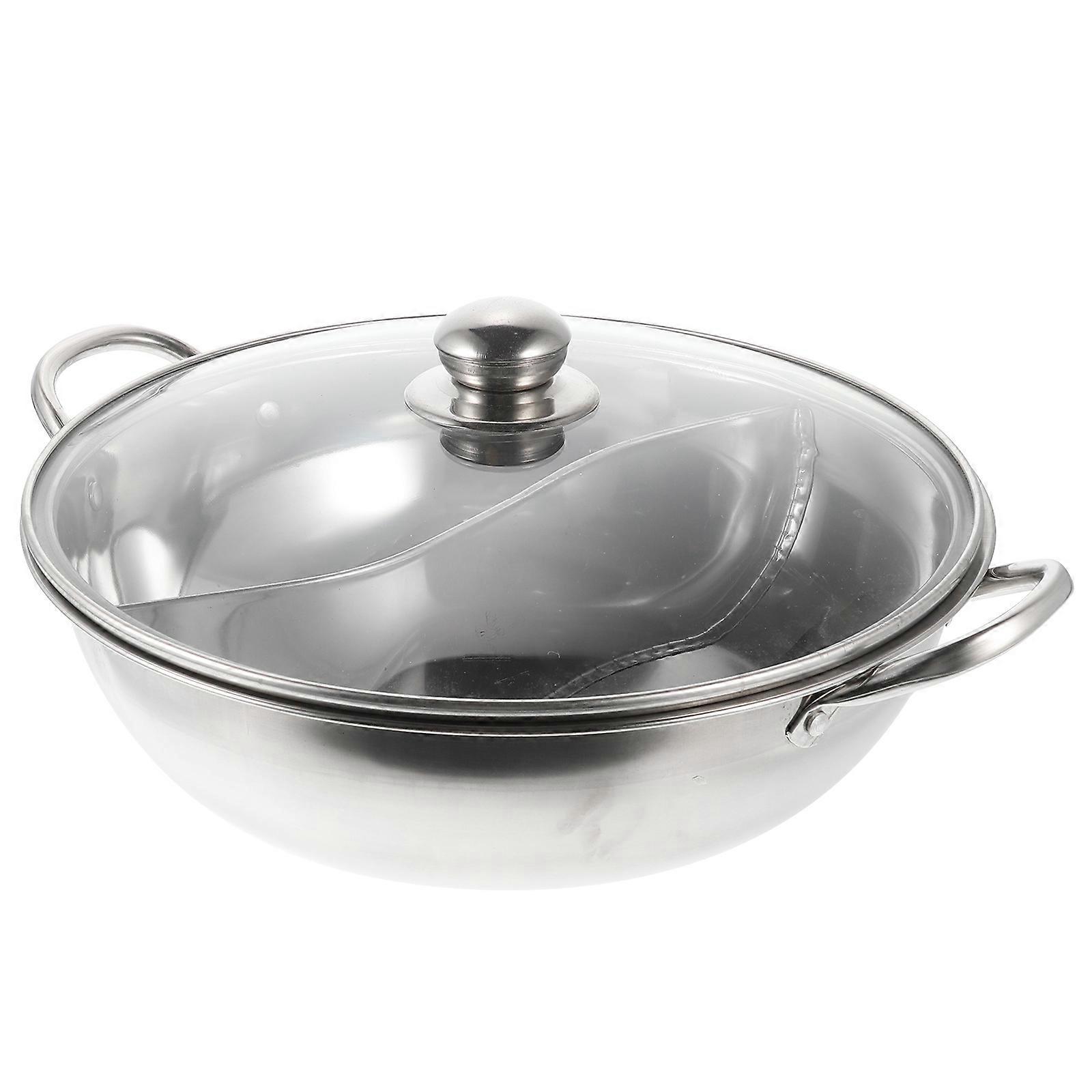 Hot Pot Cookware Double Flavor Hot Pot Household Kitchenware Silver Stainless Steel for Family Gatherings 1Set