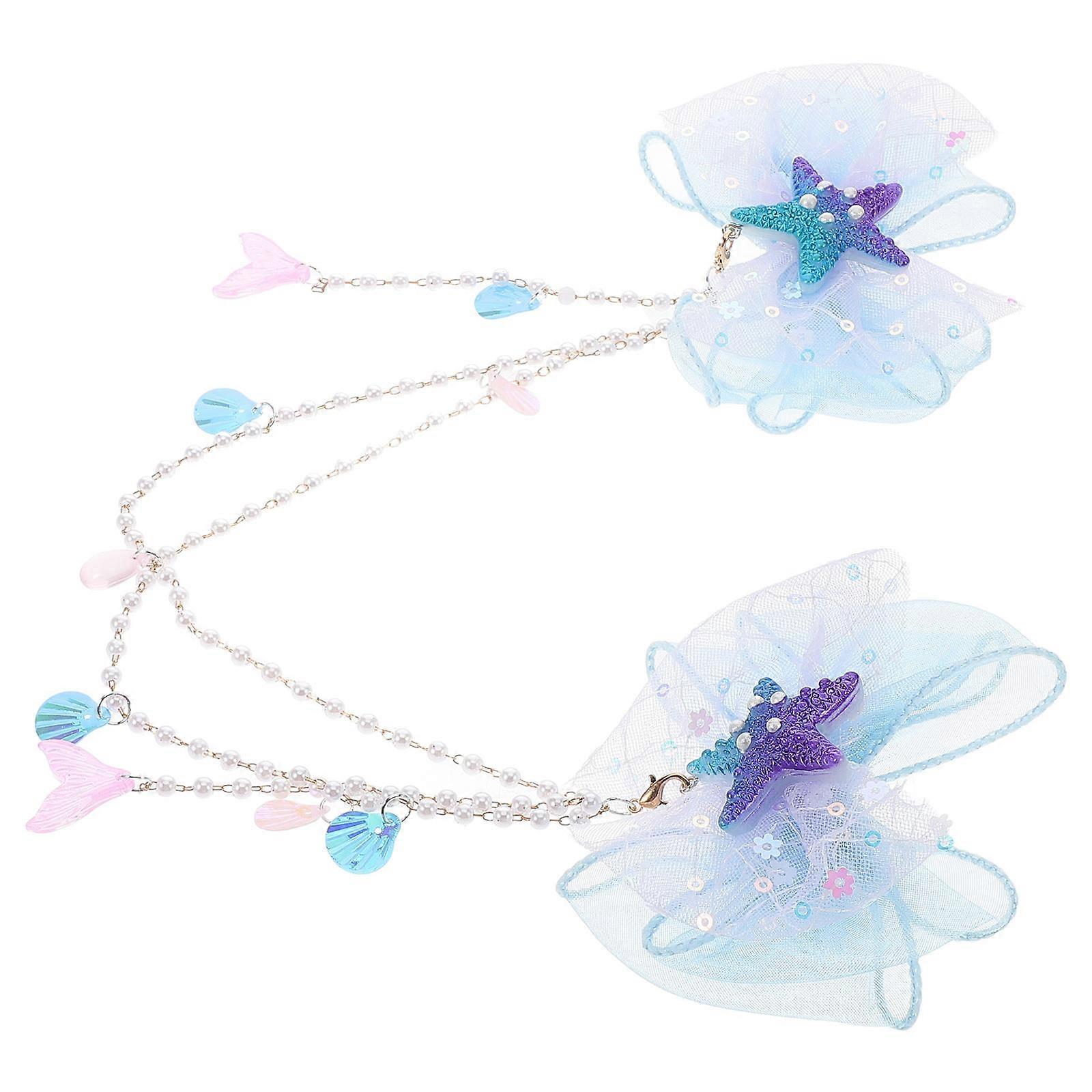 Enchanting Mermaid Bow Clips For Girls With Tassels Suitable For Stage Performances 9.00X7.00X2.00Cm Hair Decoration 1Set