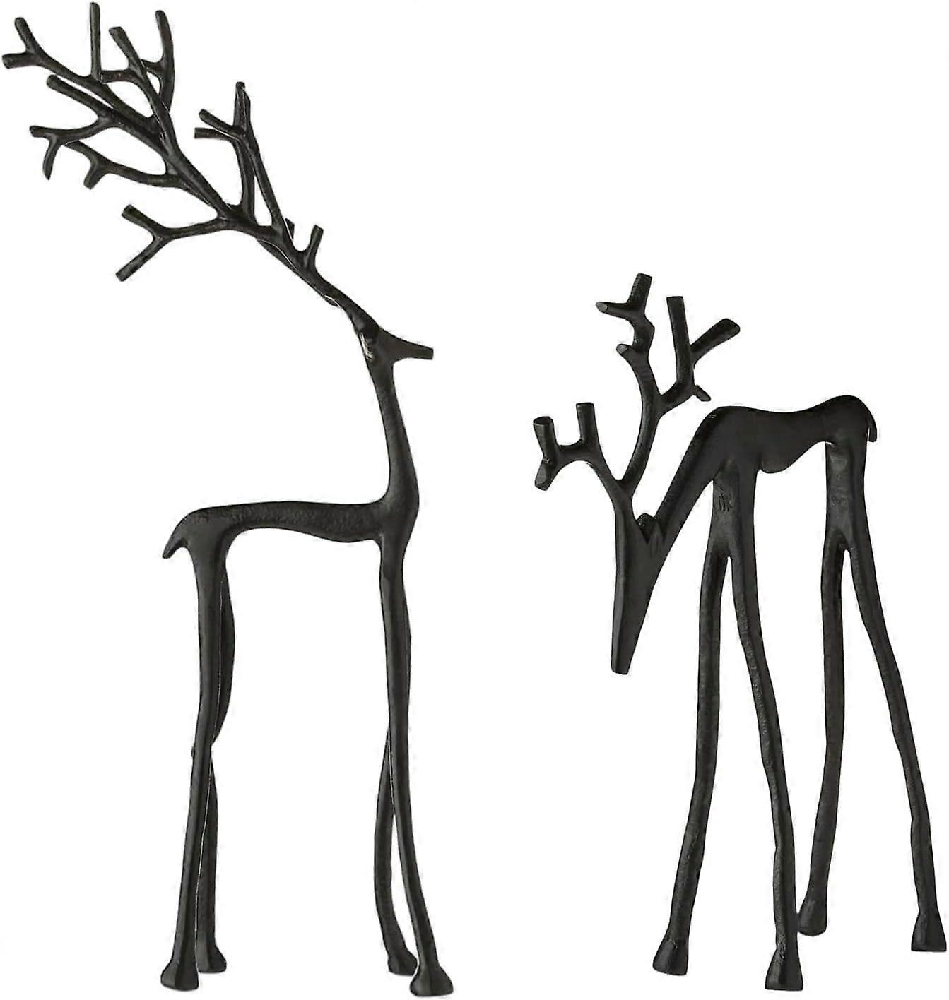 Metal Christmas Reindeer Figurine - Modern Tabletop Decoration, Contemporary Holiday & Xmas Decor - Set of 2 Black Reindeer Statues Imitation Metal Re
