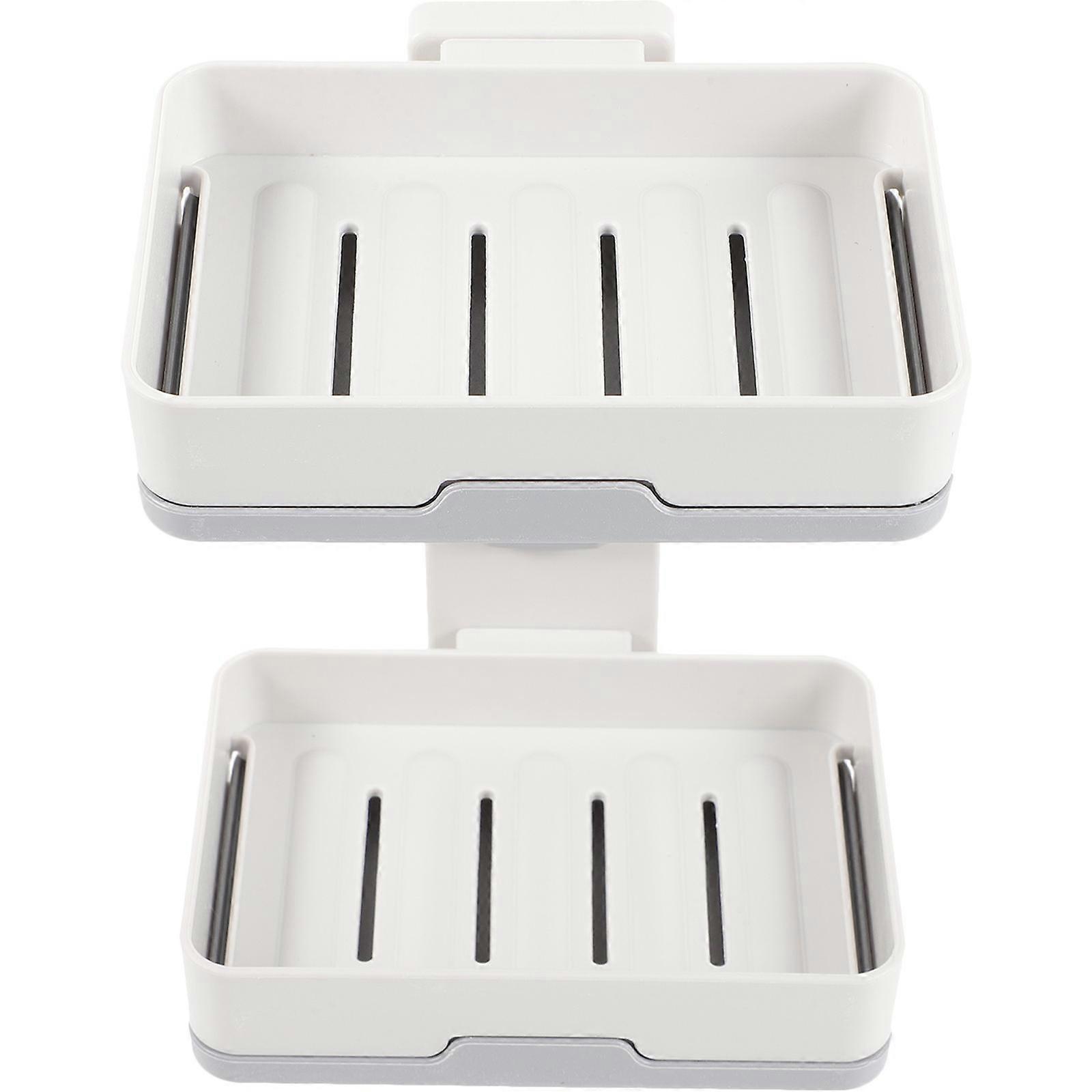 Bathroom Soap Mounted Rotating Soap Holder Tray Home Users 13x8.5x17.3cm Light Grey 1Pcs