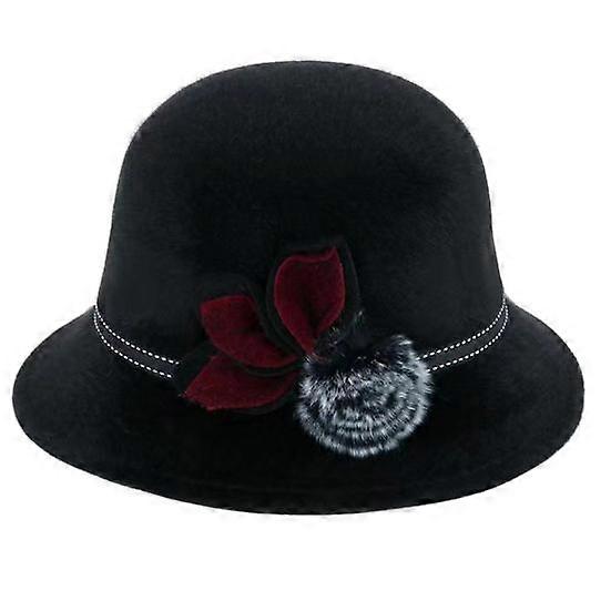 Dress Up Elegant Women Felt Hat Trendy Winter Autumn Ladies Dome with Flower