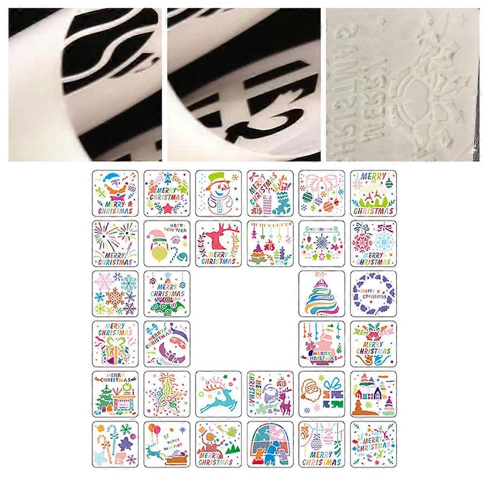 Plastic Template Drawing Stencil Hollow Painting For Christmas Celebration 13x13cm 32Pcs Black Stencil Design