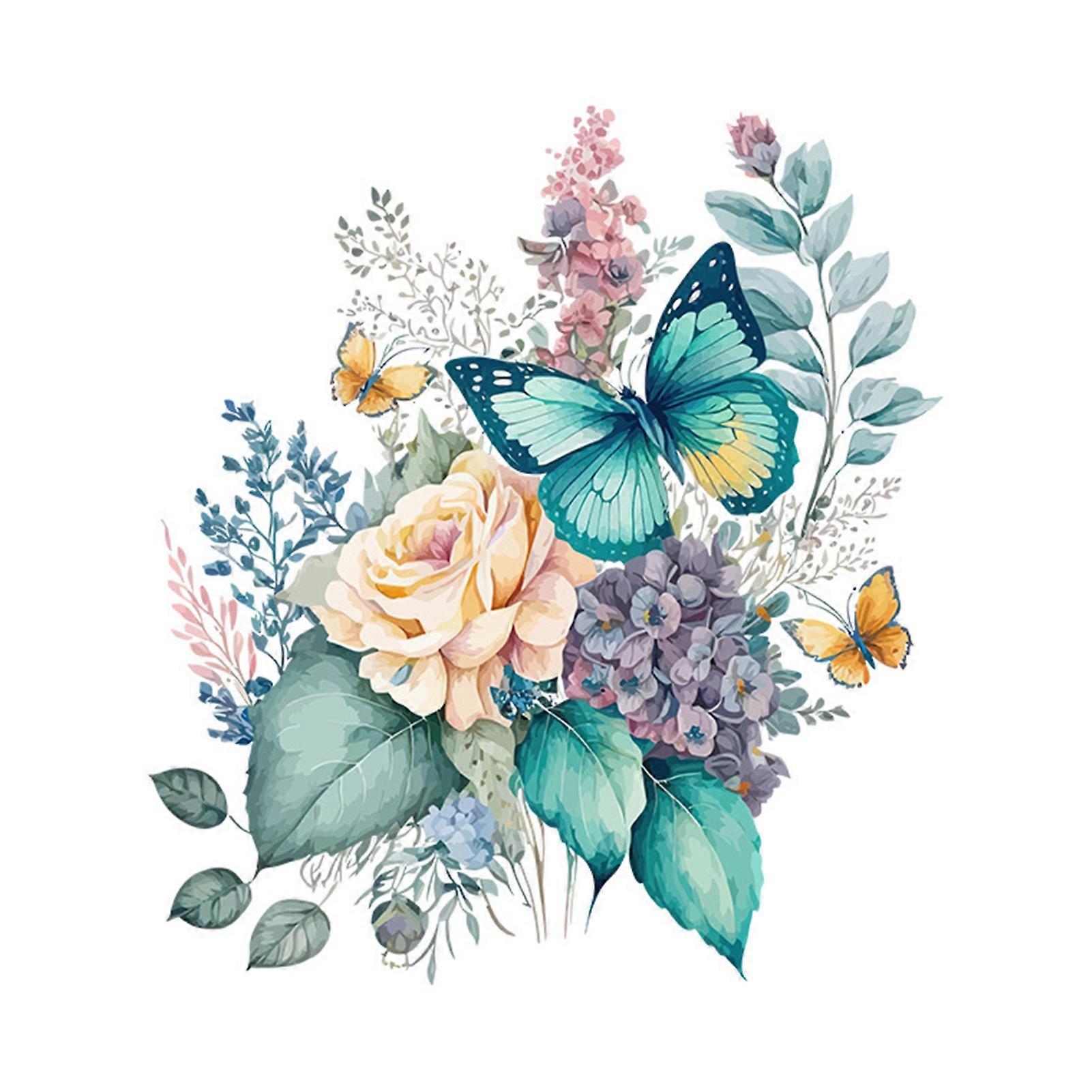 Colorful Flower Butterflies Toilet Sticker Removable Self-adhesive Waterproof PVC Living Room Wall Art Bathroom Toilet Lid Decoration Decal