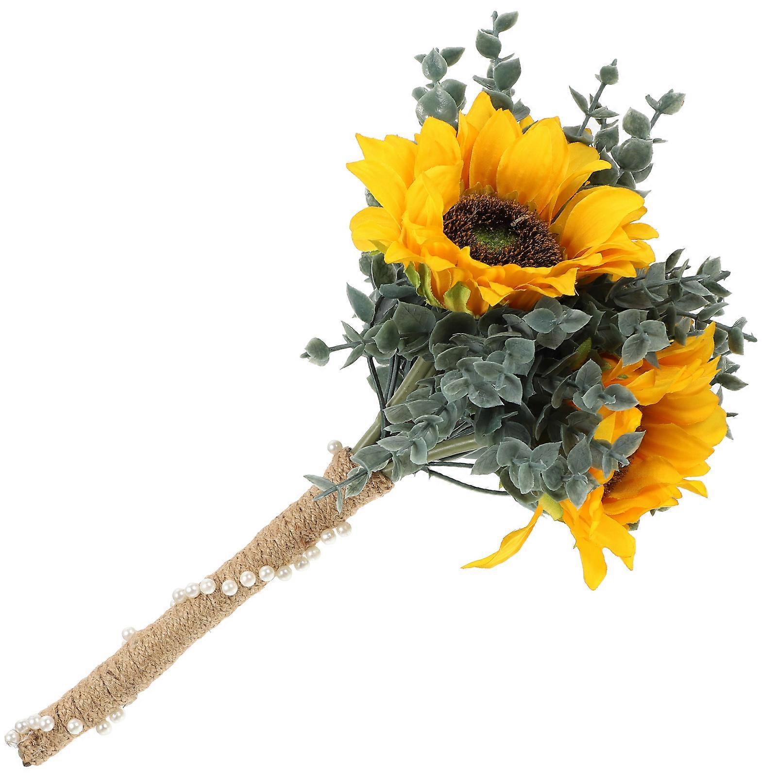 Realistic Sunflower Bridal Bouquet Artificial Wedding Decoration for Rustic Ceremonies – Easy Care Fake Flower Arrangement for Bridesmaids and