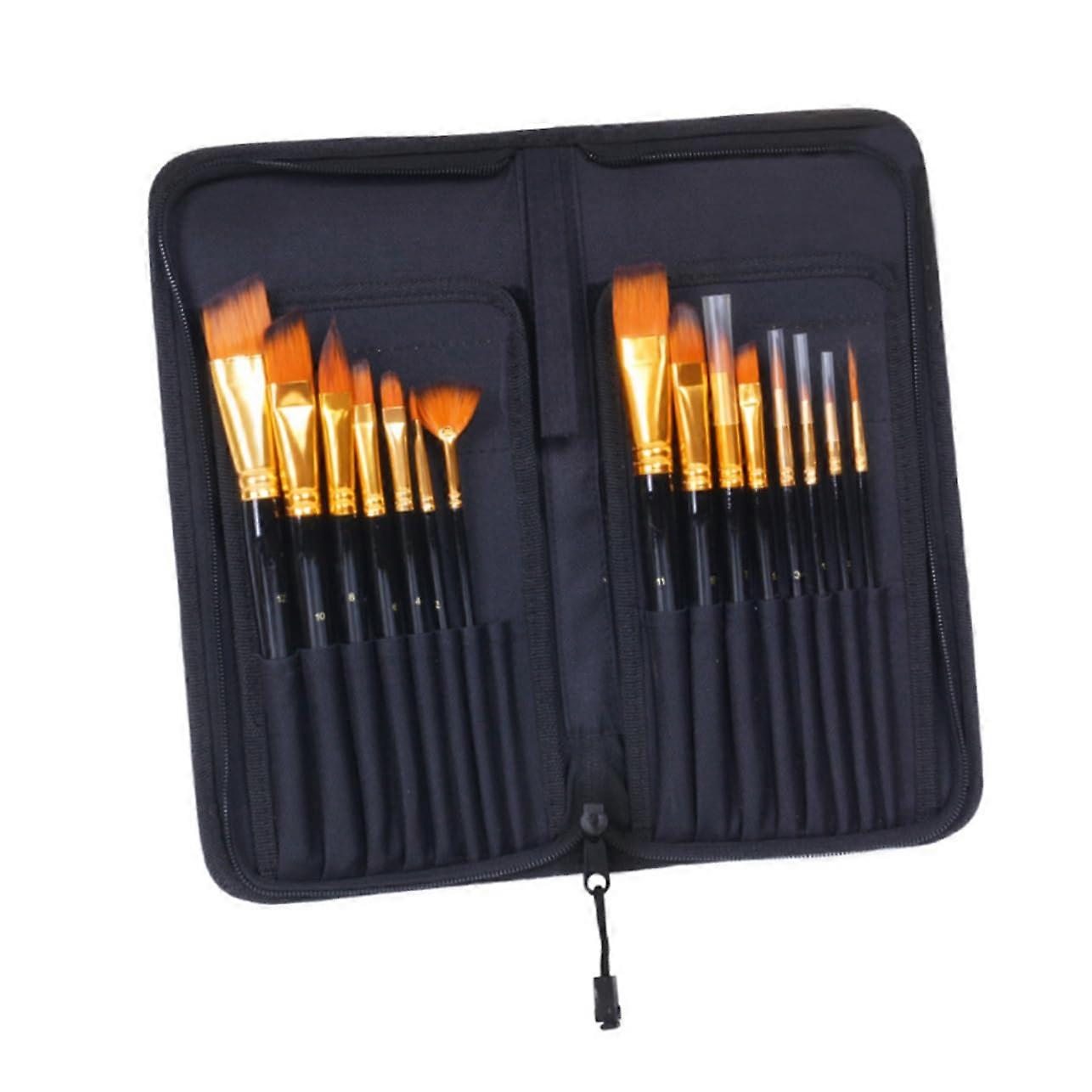 Watercolor Nylon Hair Brush Set 15pcs Paintbrushes Art Paintbrushes for Oil Wooden Handle Storage Bag