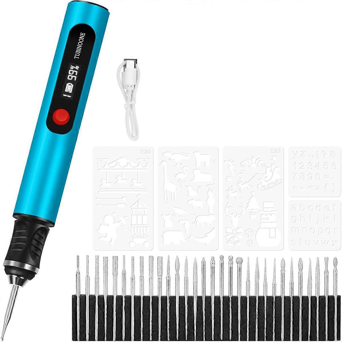 Discover the artist within you using the hand engraver pen, the ideal cordless electric engraver pen for those seeking to explore their creativity on 50+ surfaces This electric engraving pen for all material is about 8000-21000r/min, and different speeds are used to engrave different materials. The engraving pen is and ergonomically designed to give you precise control and engraving. The sound of this cordless rotary tool is very low when working, even if someone is sleeping, he or she not feel very noisy. Great for beginners and professionals to use anytime, anywhere to make creations that you like Rechargeable USB type-C charging metal engraver pen, there is a built-in overload protection chip, when the resistance is too high, it automatically power off to protect it, and prolong the service life of the jewelry engraving machine Color: C:Blue Material: Metal Package Contents: 1set x engraving tool Only the above package content, other products are not included. Note: Light reflection and different displays may cause the color of the item in the picture a little different from the real thing. The measurement allowed error is +/- 1-3cm.