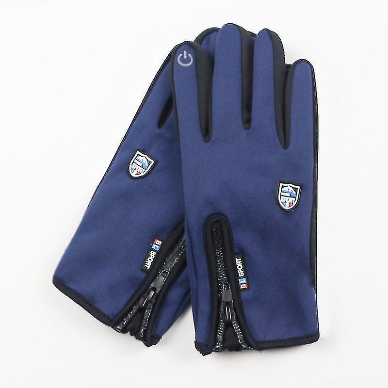 Outdoor Autumn And Winter Sports Men Plus Velvet Touch Screen Warm Ski Bike Riding Warm Gloves-blue L