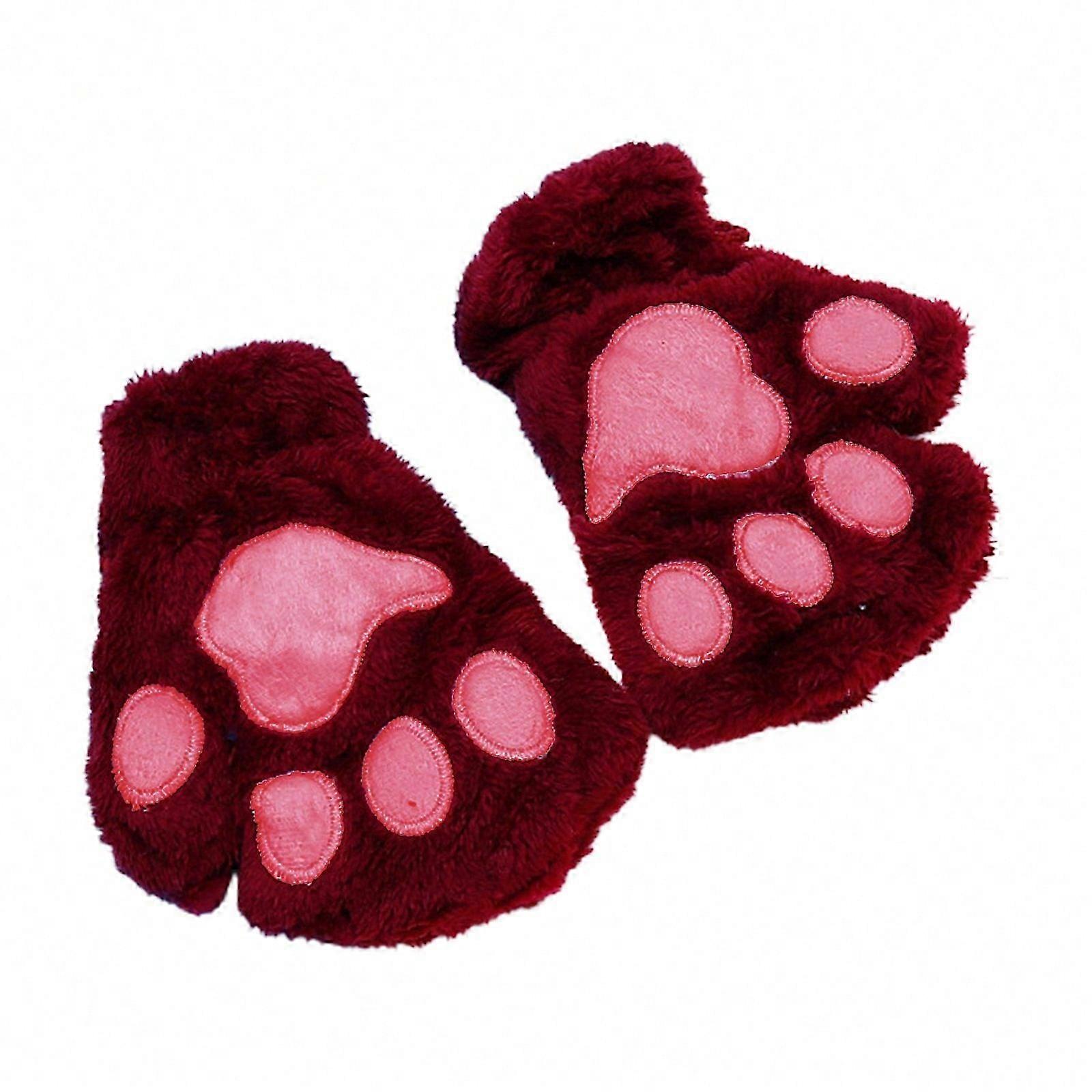 Cute for Cat Paw Gloves Kawaii Bear Claw Cosplay Faux Fur Plush Fingerless Mittens with Hanging String for Girls Women Coffee