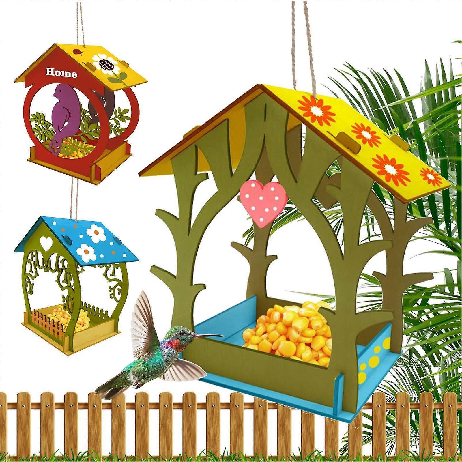 Hand Painted Wooden Bird Feeder, Sturdy Outdoor Hanging Birdhouse for Garden