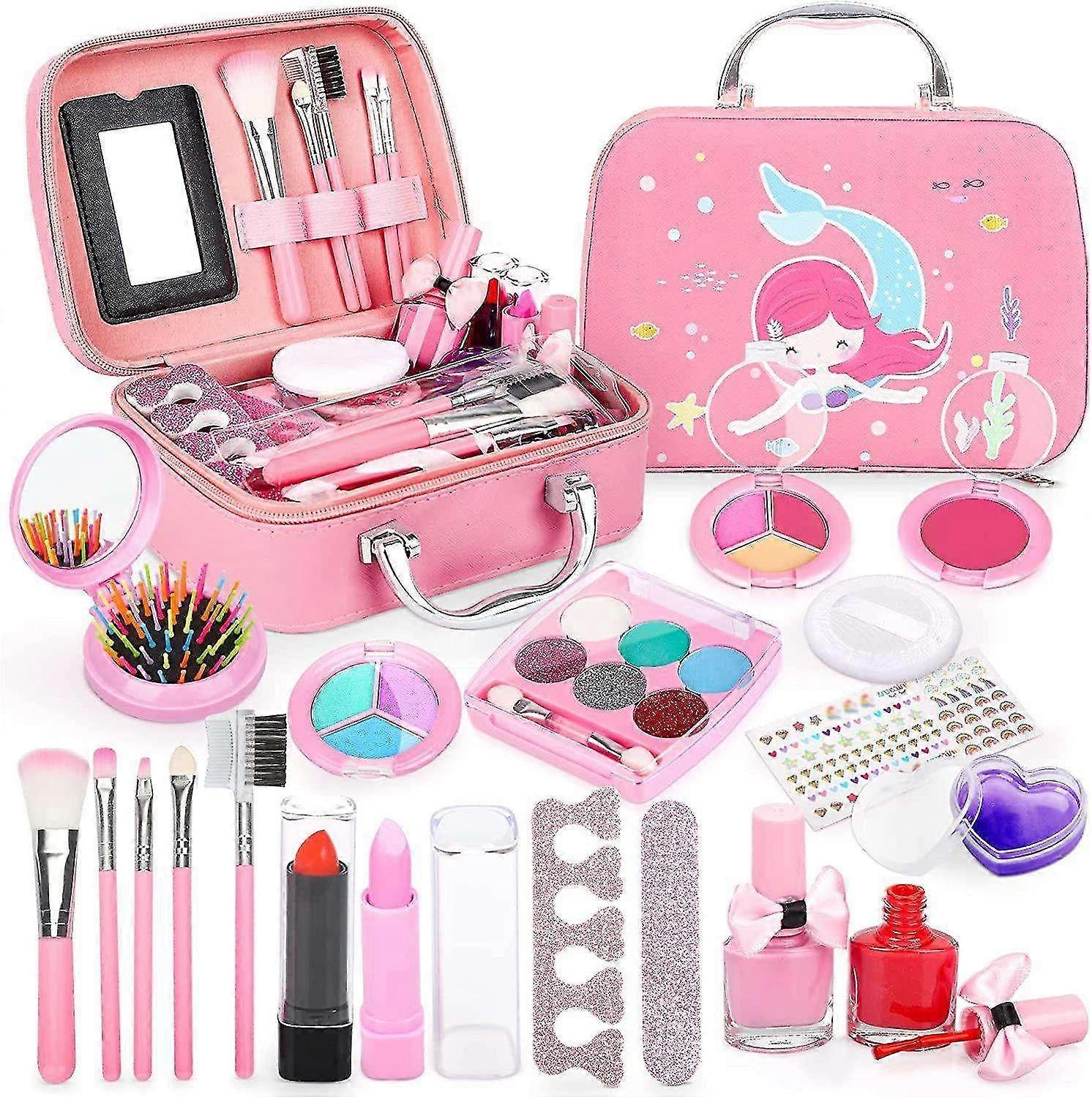 【Note】Children with sensitive skin are recommended to use the behind-the-ear test. 【Kids Nail Polish】Includes toe separators and 2 colorful nail polishes for kids DIY nail decoration. A water-based nail polish that peels off easily. 【Non-Toxic Washable】All makeup is washable and easy to remove with water. Non-toxic and safe for children. 【Satisfy Children's Curiosity】Keep children happy for hours, improve their hands-on ability and aesthetic feeling. 【Ideal Gift】Every princess dreams of having her own makeup set. Washable makeup set is the perfect gift for girls on Christmas or birthday