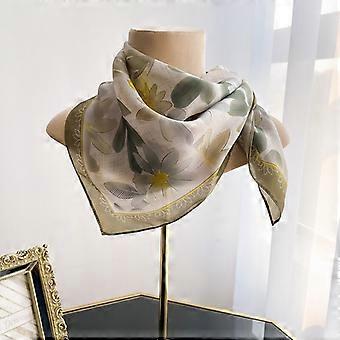 100% Silk Scarf Women Vintage Green Leaves Kerchief Square Bandana Wrap 68*68cm