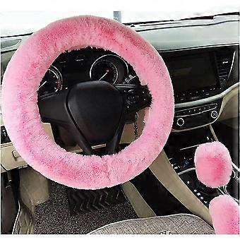 3pcs/set Soft Plush Steering Wheel Cover Winter Furry Fluffy Car Accessory