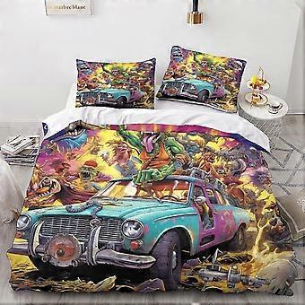 Cartoon Print Duvet Cover Bedding Set Soft Microfiber with Zipper Closure Vintage Car Quilt Cover Pillowcases King Size