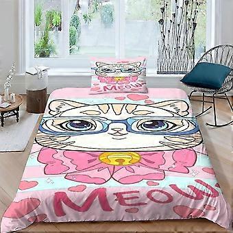3 Pieces Cat Duvet Cover Set, 3D Animal Printed Theme Bedding Quilt Cover with Zipper Closure, Microfiber Bedding Single
