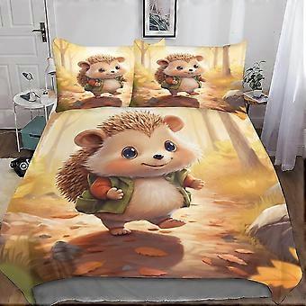 3-Piece Hedgehog Printed Bedding Set with Zipper Closure for Kids and Teens