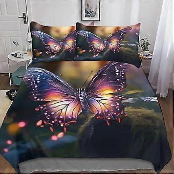 Colorful Flower Butterfly Duvet Cover Set, 3D Microfiber Bed Set with Pillow Shams, 3 Pieces, Zipper Comforter Cover