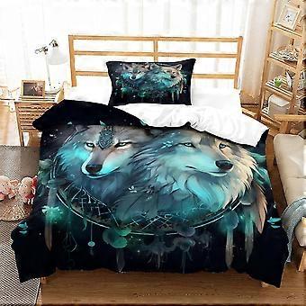 3 Pieces Stylish Wolf Bedding Set with Pillowcases Soft Microfiber Duvet Cover Double Size King
