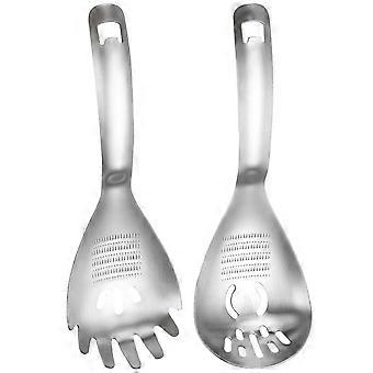 2Pcs Silver Slotted Spoon Stainless Steel Food Serving Strainer 24.5X6.5CM