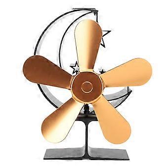 5 Blade Heat Powered Stove Fan Aluminum Alloy Fast Heat Dissipation Heat Powered Fireplace Fan for Wood Log Fireplace Gold