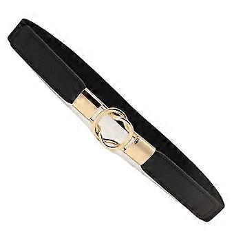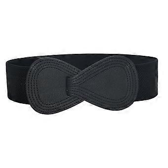 Interlock Buckle 8-shaped Faux Leather Elastic Belt Cinch Waistband for Lady black 70CM