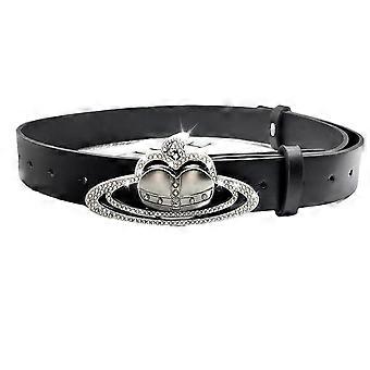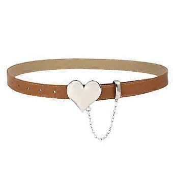 Women Waist Belt Heart Decor Chain Faux Leather Waist Decoration Women Jeans Belt brown