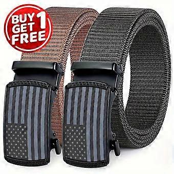 Buy 1 Get 1 Free Classic Ratchet Men's Nylon Belt with American Flag Buckle Automatic Adjustment for Quick Fit & Comfortable Wear Ideal for