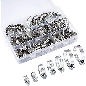 Hose Clamp, Stainless Steel Hose Clamp, 60 Pieces Stainless Steel Hose Clamp, 8-38mm 7 Different Sizes, for Swimming Pools, Washing Machine, Dishwash