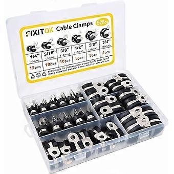 -52 Pieces Rubber Hose Clamp P Clips Pipe Clamps Stainless Steel Clamps Rubber Cushion Clamps 6 Sizes 1/4" 5/16" 3/8" 1/2" 5/8" 3/4"
