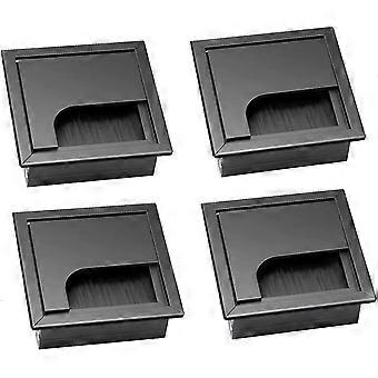 black 4-piece recessed cable management box, square recessed cable management system, with brush seal, hole cover, office cable management for desktop