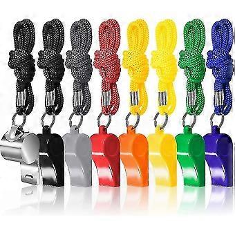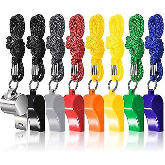 8 Pack Coach Referee Whistle With Lanyard, Colorful Plastic And Stainless Steel Football Whistle For