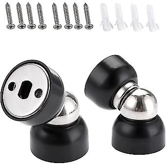 4 Pieces Metal Magnetic Door Stops, Screw-On Floor Door Stops, No Drilling Self-adhesive Door Stoppers for Door and Wall Protection(Black)