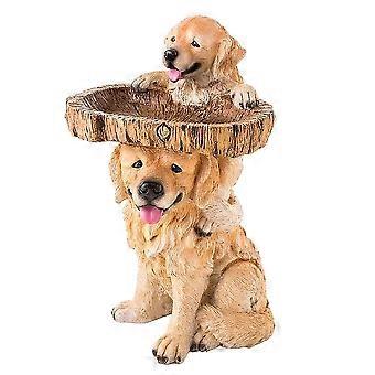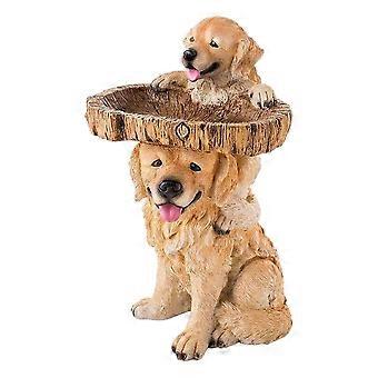 Puppy Polyresin Bird Bath Brown Pedestal Handmade Gifts for Outdoor Home Garden Lawn Decorations