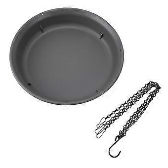 Hanging Bird Feeder with Hook Metal Chain Plastic Bird Bath Feeding Bowl Round Tray for Outdoor Cour