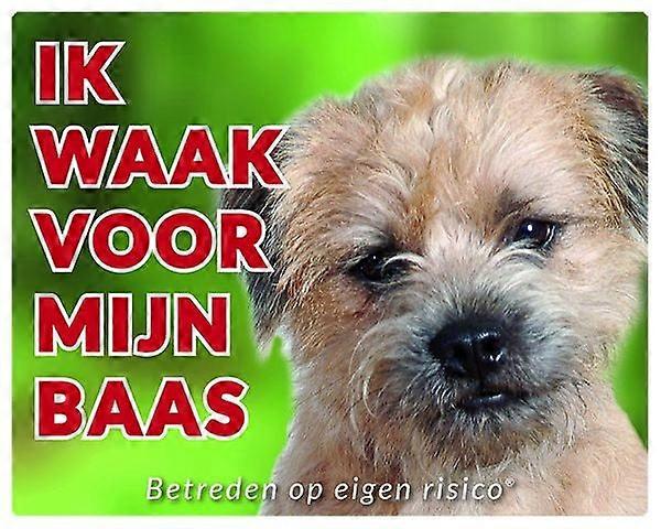 Stickerkoning Border Terrier Waakbord - Ik Waak Voor Mijn Baas (2)