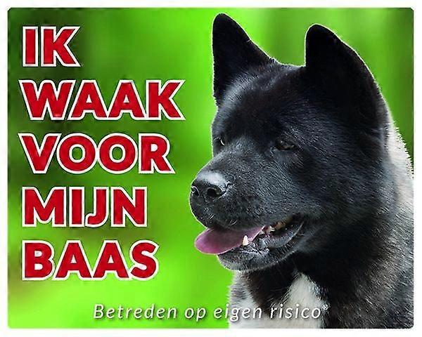 Stickerkoning Akita Waakbord - Ik Waak Voor Mijn Baas Zwart (2)