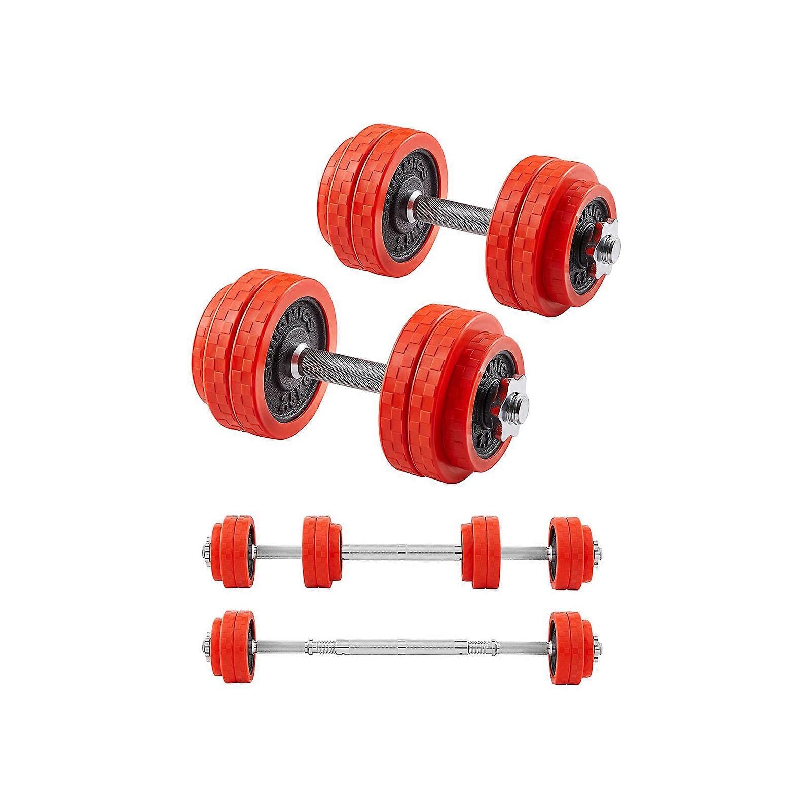 Homestorecity Dumbbellset, gietijzer, verstelbare dumbbellset met verbindingsbuis, afneembare beschermhoezen, voor mannen en vrouwen, gewichtheffen voor thuis, sportschool, rood - Homestorecity biedt hoogwaardige fitnessaccessoires voor iedereen die werkt aan een ideaal lichaam. Onze dumbbellset is ontworpen om u een optimale trainingservaring te bieden zonder tijd- of ruimtebeperkingen. Hiermee kunt u... ...uw training personaliseren: verschillende gewichten stellen u in staat om de gewichten eenvoudig aan te passen aan uw trainingsintensiteit door ze te combineren, waardoor u geld en ruimte bespaart voor extra gewichten. Hoe u deze dumbbellset omvormt tot een halterstang: Met de speciale connector die bij de levering is inbegrepen, kunt u in een handomdraai een halterstang creëren. Dit geeft u nog meer mogelijkheden om de spieren van verschillende lichaamsdelen te trainen en betere trainingsresultaten te behalen. Productdetails: Kleur: Rood Materiaal: Gepoedercoate gietijzeren schijven, gegalvaniseerde ijzeren staven, ijzeren stersloten, siliconen beschermhoes Leveringsomvang: 4 x 2,5 kg schijven 4 x 1,25 kg schijven 2 x staven 4 x stersloten 1 x verbindingsbuis Homestorecity Opmerkingen: Breng voor gebruik van de halters een roestwerende olie aan op het oppervlak. Bewaar de halters om veiligheidsredenen niet op hoge plaatsen waar ze naar beneden kunnen rollen. Kinderen mogen niet met de halters spelen. Leg de halters na de training voorzichtig neer om blessures te voorkomen.