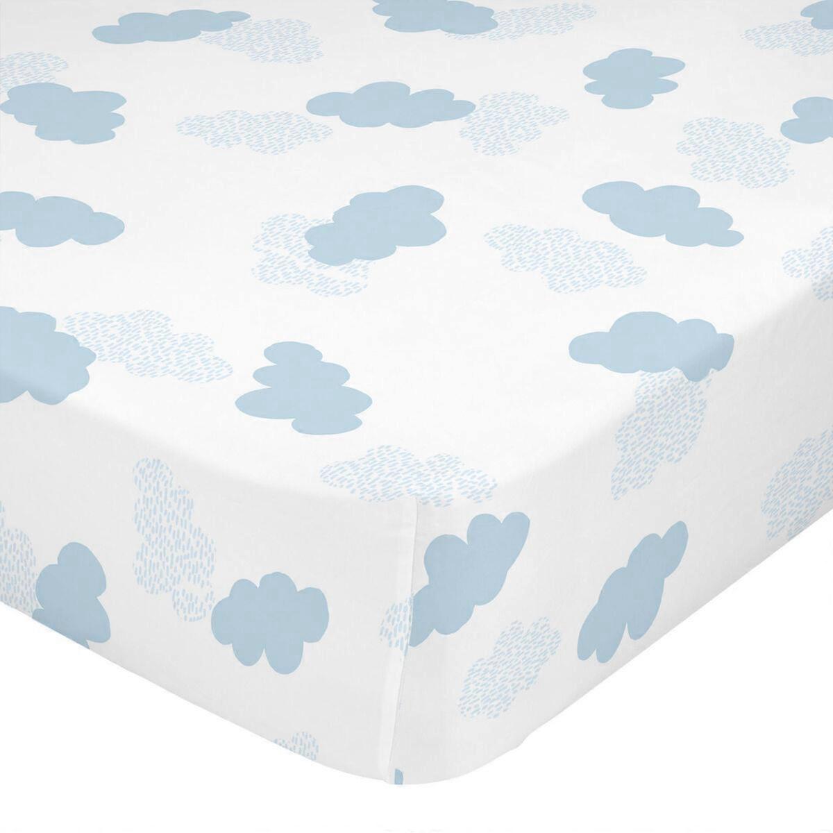 Bettlaken HappyFriday BASIC KIDS Blau 60 x 120 x 14 cm Wolken