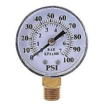 0-100 Psi Pressure Gauge 1/4" Npt 0-7 Bar Sturdy Metal Case Stable Performance