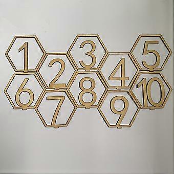 1-10 Wooden Table Number Plate, Hexagonal Hollow Table Number Card for Bar Wedding Party Decor